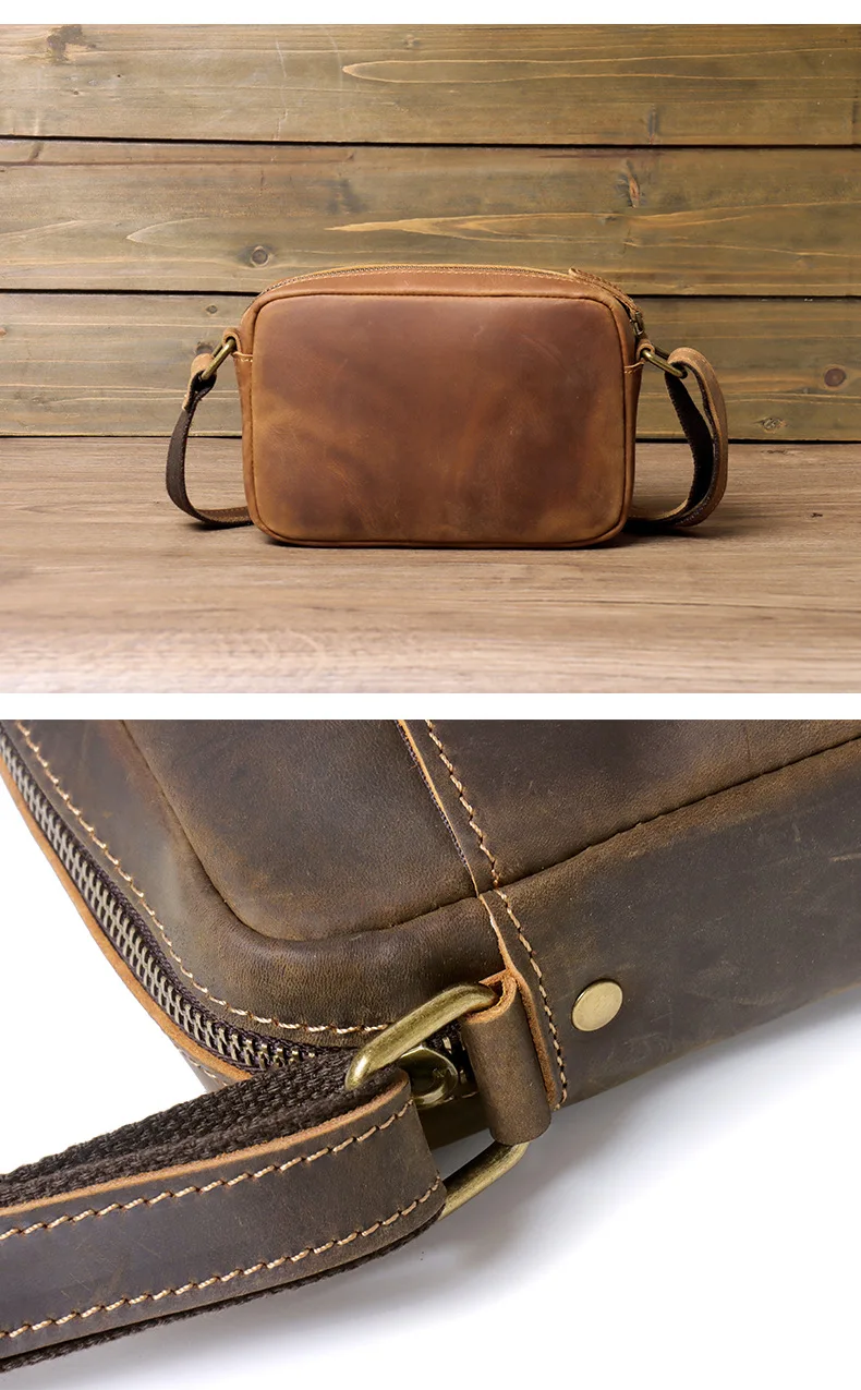 YH3247 Crazy Horse Leather Men's Shoulder Bag Retro Simple Head Layer Cowhide Leather Crossbody Bag